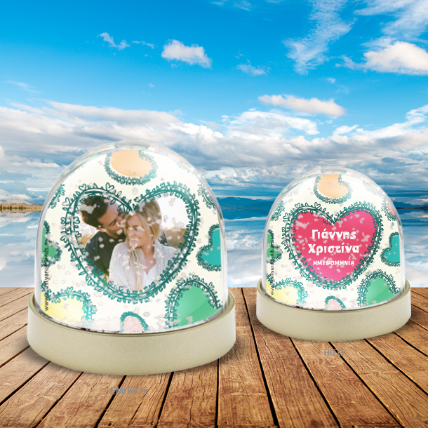 Η Χιονόμπαλα Προσωποποιημένη για Επετείους με Φωτογραφία, Αφιέρωση, φτιάχνεται κάθε φορά αποκλειστικά μόνο για τον δικό σας, φίλο ή φίλη και μένει για πάντα αναμνηστικό γιατί έχει τα ονοματα και την ημερομηνία που προσφέρατε το δώρο στην 1η επετειο, 2η επετειο, 5η επέτειο, 10η επετειο, 15η επετειο.