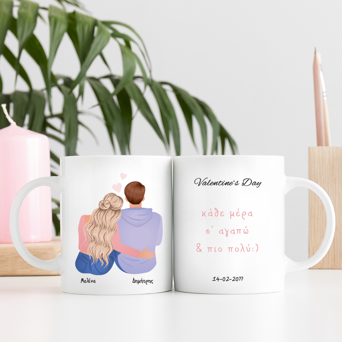 Κούπα Δώρο για ζευγάρια με Ονόματα, Μήνυμα, Ημ/νία για την ημέρα των ερωτευμένων, Αγίου Βαλεντίνου, που θα δημιουργεί μοναδικές αναμνήσεις όταν θα πίνει τον καφέ του το αγόρι σας ή το κορίτσι σας.
