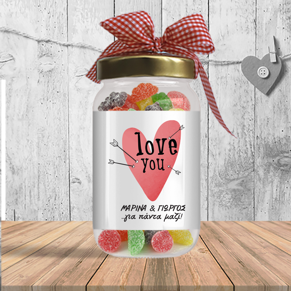 Καραμέλες σε Βαζάκι με Καρδιά με Αρχικά, ανακαλύψτε ένα διαφορετικό & οικονομικό δώρο για να προσφέρετε στo κορίτσι σας, γυναίκα σας για την 1η σας επέτειο, ή την γιορτή των ερωτευμένων.