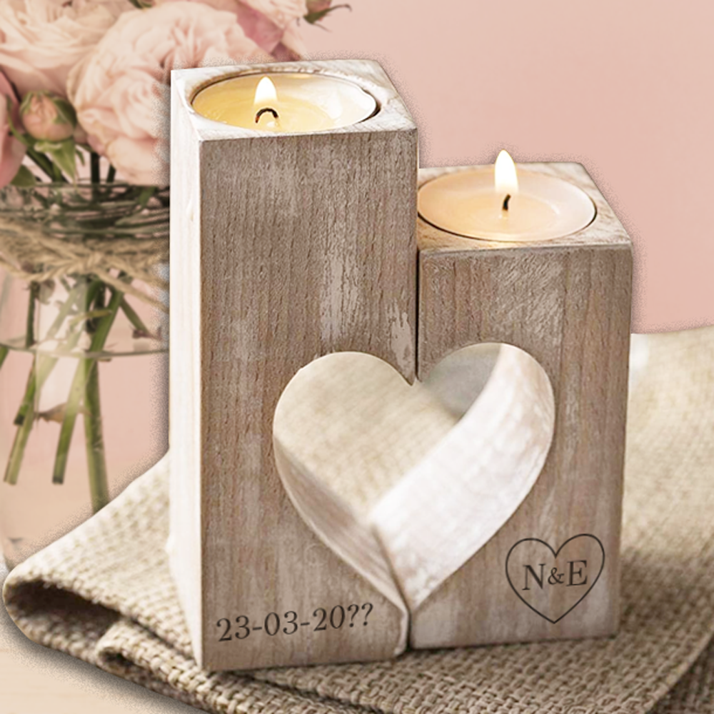 Δώρο γάμου Προσωποποιημένο διακοσμητικό από 2 Ξύλινα Κηροπήγια που σχηματίζουν καρδιά με Αρχικά, Ημερομηνία για τα κουμπαράκια σας στην μοναδική σας στιγμή. Στο familyandfriends.gr θα βρείτε μοναδικά προσωποποιημένα δώρα γενεθλιων, γενεθλια και δώρα γιορτών προσωποποιημένα για αγόρια και κορίτσια, ανδρες, μαμα, μπαμπα, παππου, θειο, θεια, νονα, νονο και γυναίκες και καθε φιλο η συγγενή.