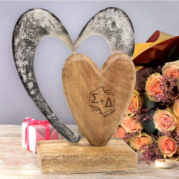 Επιλέξτε ένα διαφορετικό Προσωποποιημένο Δώρο για 1η σας Επέτειο, Διακοσμητικό με Μεταλλική & Ξύλινη Καρδιά με αρχικά χαραγμένα με laser.