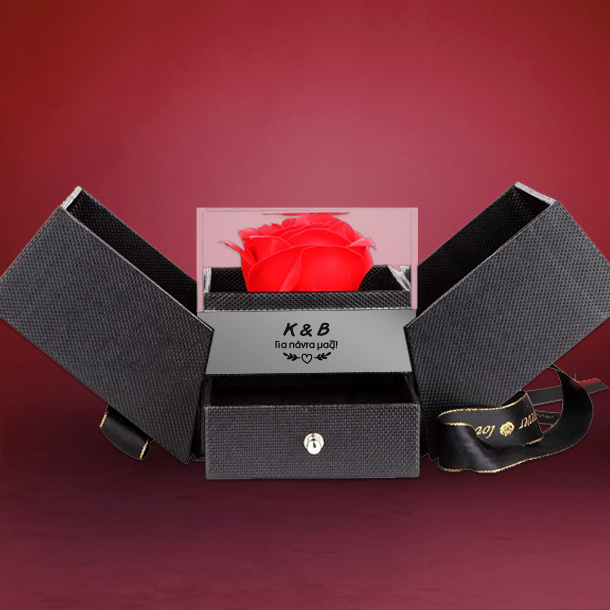 Προσωποποιημένα & ξεχωριστά δώρα για επετειος γαμου, για πρόταση γαμου χρυση αργυρη, επετειος γαμου 20 χρονια, επετειος σχεσης, επετειοι γαμου ονομασιες, πλατινενια επετειος γαμου. Το Προσωποποιημένo Κουτί με Τριαντάφυλλο, με αρχικά & θήκη για να βάλετε όποιο άλλο μικρό δώρο θέλετε, όπως κόσμημα, φτιάχνεται αμέσως μετά την παραγγελία σας με τα κείμενα που έχετε επιλέξει εσείς.