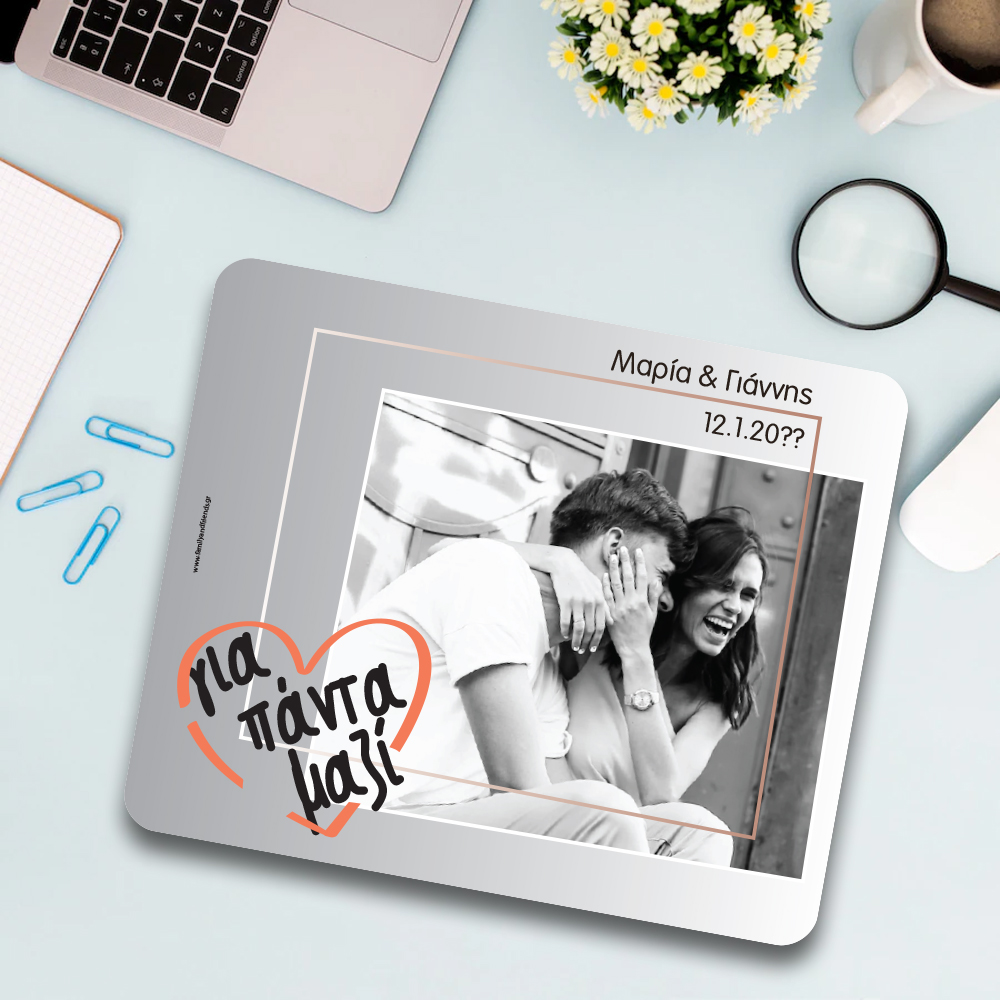 Κάντε και εσείς ένα μοναδικό Δώρο προσωποποιημένο με Φωτογραφία, στην Γυναίκα σας ή τον ανδρα σας με αφορμή την όποια επέτειο γιορτάζετε για να το έχει κάθε μέρα στο γραφείο του. Mouse Pad Δώρο με Φωτογραφία, Ονόματα, Μήνυμα Προσωποποιημένο, για να ευχηθείτε χρόνια πολλά στον φίλο ή τον φίλο σας με αφορμή την επέτειο γιορτάζετε. Το Προσωποποιημένο Mouse Pad Δώρο με Φωτογραφία, Ονόματα, Μήνυμα, δώρο αγιου βαλεντίνου, φτιάχνεται κάθε φορά αποκλειστικά μόνο για τον δικό σας, φίλο ή φίλη μετά την παραγγελία.