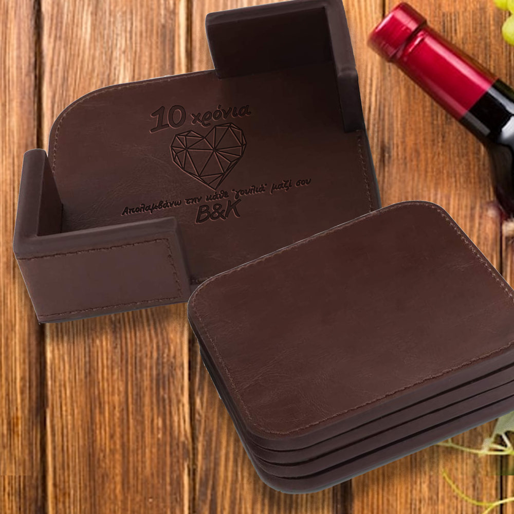 Δημιουργήστε μια μοναδική στιγμή με την γυναίκα σας, με αφορμή την επόμενη επέτειο που γιορτάζετε με το Προσωποποιημένο δώρο με χάραξη με Laser, Σετ 4 Δερμάτινα Σουβέρ, Μήνυμα στη βάση για να βάζει κάθε μέρα το ποτήρι με το νερό του. 4 Δερμάτινα Σουβέρ LONDO δώρο για τον αδελφό σας ή την αδελφή σας που πήραν το πτυχίο τους, και θα δημιουργεί μοναδικές αναμνήσεις κάθε μέρα. που θα το χρησιμοποιούν.