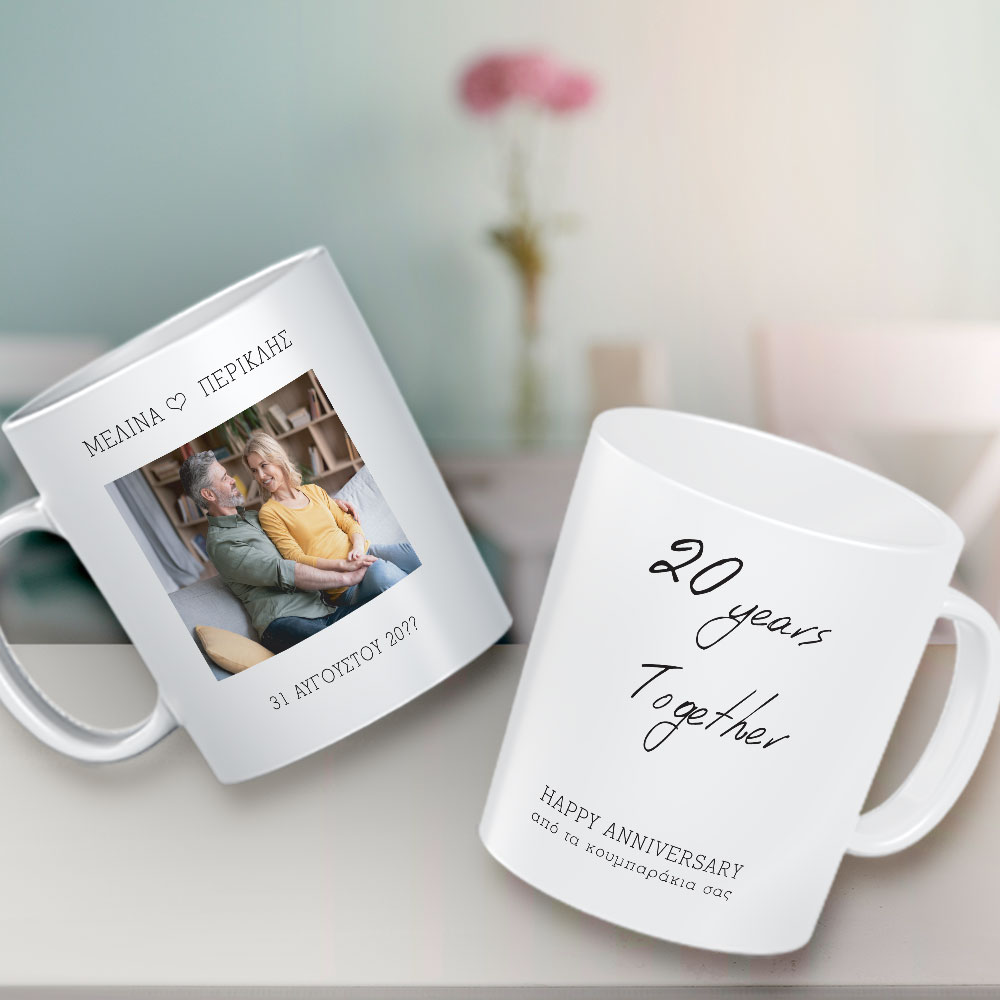 Με ένα Προσωποποιημένο Δώρο Δημιουργείτε μοναδικές στιγμές στη σχέση σας, προσφέροντας το στο αγόρι σας ή το κορίτσι σας με αφορμή τα γενέθλια ή την γιορτή του, Φτιάξτε με Ονόματα, Φωτογραφία, Κούπα για Επέτειο & μήνυμα για είναι το δώρο για την 1η - 2η - 3η - 5η - 10η - 15η επετείο που θα ξεχωρίσει από όλα όσα έχετε κάνει μέχρι σήμερα στο σύντροφό σας.