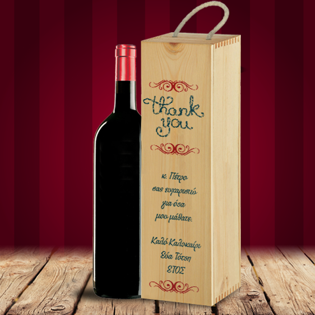 Προσωποποιημένο Κουτί με Κρασί Ξύλινο, Thank you