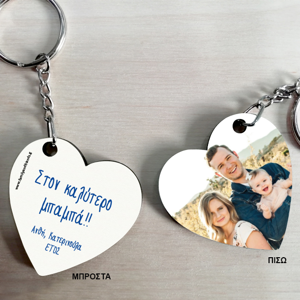 Πρωτότυπο Προσωποποιημένο Μπρελόκ Καρδιά διπλής όψης, στον καλύτερο/η, με φωτογραφία και Μήνυμα, ένα ξεχωριστό Δώρο για την Μαμά ή τον Μπαμπά με αφορμή την γιορτή της Μητέρας, ή την γιορτή του Πατέρα για να τους πείτε χρόνια πολλά και να τους δείξετε την αγάπη σας με ένα διαφορετικό δώρο .