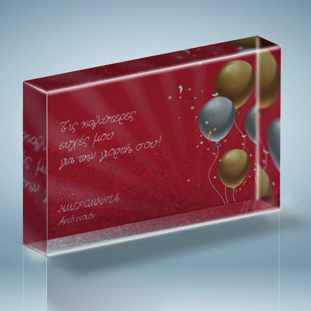 Έχει την γιορτή του ή τα γενέθλια του φίλος ή συγγενής σας και ψάχνετε ένα πρωτότυπο δώρο? Το πιο πρωτότυπο Δώρο Γενεθλίων είναι τα Χρόνια Πολλά με Μπαλόνια σε Κορνίζα με αιωρούμενο γκλίτερ με Ευχές για τα Γενέθλια, ένα μοναδικό αναμνηστικό δώρο για τον καλύτερο φίλο ή την καλύτερη φίλη σας με αφορμή τα γενέθλιά τους. Στο familyandfriends.gr θα βρείτε μοναδικά προσωποποιημένα δώρα γενεθλίων και δώρα γιορτών προσωποποιημένα για αγόρια και κορίτσια, άνδρες και γυναίκες Το Δώρο Γενεθλίων στην μαμά, ή τον μπαμπά, Χρόνια Πολλά με Μπαλόνια σε Κορνίζα με αιωρούμενο γκλίτερ με Ευχές, είναι το δώρο που θα ενθουσιάσει και θα το κρατήσει σαν αναμνηστικό δώρο γενεθλίων για πάντα! Το Προσωποποιημένο Δώρο Χρόνια Πολλά με Μπαλόνια σε Κορνίζα με αιωρούμενο γκλίτερ με Ευχές, για τον φίλο σας, την νονά, ή τον συνεργάτη σας είναι το διαφορετικό δώρο που θα ξεχωρίσει από όλα όσα έχετε κάνει μέχρι σήμερα. Από όλα τα άλλα δώρα που θα πάρει ο φίλος ή η φίλη σας την ημέρα των Γενεθλίων του ή της ονομαστικής γιορτής, θα ξεχωρίσει το δωρο Χρόνια Πολλά με Μπαλόνια σε Κορνίζα με αιωρούμενο γκλίτερ με Ευχές γιατί είναι προσωπικό και φτιάχνεται αποκλειστικά αφού κάνετε την παραγγελία σας, για το πρόσωπο που θα το χαρίσετε. Είναι επίσης ένα πρωτότυπο αναμνηστικό δωράκι για κάθε άνδρα ή γυναίκα που έχετε ζήσει πολλές εμπειρίες και γεγονότα μαζί και θέλετε να ευχηθείτε για την γιορτή του. Στα Προσωποποιημένα δώρα με ή χωρίς Φωτογραφία, για το φίλο ή τη φίλη, τον άνδρα ή τη γυναίκα μπορείτε να αλλάξετε τα κείμενα όπως εσείς θέλετε ανεξάρτητα από την δική μας πρόταση. Το Δώρο για Γενέθλια ή γιορτή, Χρόνια Πολλά με Μπαλόνια σε Κορνίζα με αιωρούμενο γκλίτερ με Ευχές, μπορεί να είναι πραγματικά ένα ξεχωριστό και οικονομικό αναμνηστικό δώρο και για το μπαμπά, τη μαμά, τη νονά με αφορμή τα γενέθλιά τους ή οποιαδήποτε άλλη αφορμή. Πρωτότυπα Δώρα Γενεθλίων για ενήλικες, για Άνδρες, για Γυναίκες, δωρο γενεθλιων για την κοπελα μου. Πρωτότυπα Προσωποποιημένα Δώρα Γενεθλίων για ενήλικες, για Γυναίκες. προσωποποιημενα δωρα γενεθλιων για φιλες. Δώρα Γενεθλίων για ενήλικες, για Άνδρες, για Γυναίκες, προσωποποιημενα δωρα γενεθλιων για αντρες. Συνδυάστε τα Χρόνια Πολλά με Μπαλόνια σε Κορνίζα με αιωρούμενες καρδούλες με Ευχές για Γενέθλια, με ένα προσωποποιημένο βαζάκι με καραμέλες με όνομα για Χρόνια Πολλά ΠΕΡΙΓΡΑΦΗ Πρωτότυπη Κορνίζα με αιωρούμενο γκλίτερ σε νερό σαν την κλασική χιονόμπαλα που ξέρετε αλλά αντί για χιόνι αιωρούνται καρδούλες μέσα στο νερό Διαστάσεις 10cm Χ 15cm Χ 2cm Στέκεται με την μικρή ή την μεγάλη διάσταση 4χρωμη εκτύπωση για το εικαστικό Το χρώμα της συσκευασίας δώρου εξαρτάτια από την διαθεσιμότητα