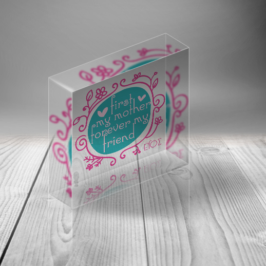 Ένα Μοναδικό και ξεχωριστό Διακοσμητικό Προσωποποιημένo Plexiglas First my mother, forever my Friend για την γιορτή της μητερας. Το Διακοσμητικό PlexiGlas, Προσωποποιημένo με Ευχή, Όνομα, για να πείτε χρόνια πολλά στην αγαπημένη σας μαμα..