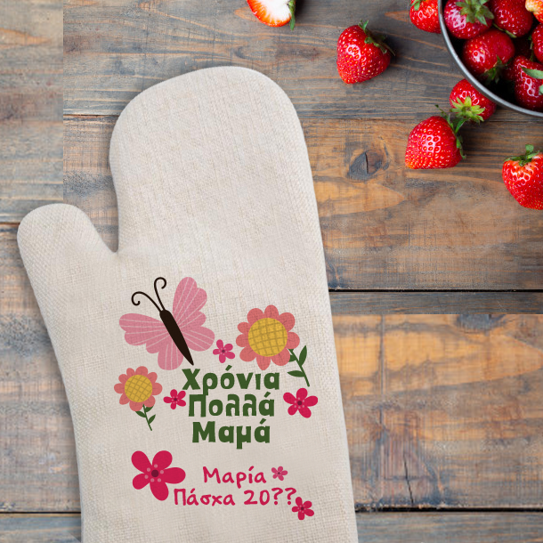 Το Πρωτότυπο Δώρο Προσωποποιημένο Γάντι Κουζίνας με Ονόματα, Μήνυμα, με Λουλούδια, είναι ένα οικονομικό δώρο που μπορεί να χρησιμποποιηθεί στην κουζίνα της θείας, της μαμας ή της γιαγιάς για να κόβει λαχανικά ή ότι άλλο χρειάζεται, που θα εντυπωσιάσει οποιον το παραλάβει και θα δείξετε ότι τον θυμηθήκατε και πόσο πολύ τον αγαπάτε!