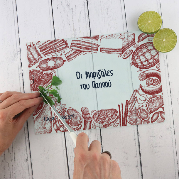 Για τα Ψητά Γυάλινη Επιφάνεια Κοπής Προσωποποιημένη με Όνομα