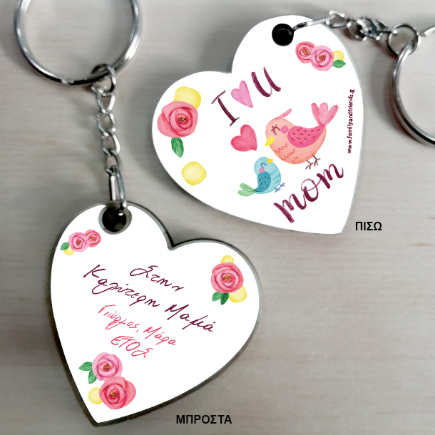 Πρωτότυπο Προσωποποιημένο Μπρελόκ I love you Mom, Μπρελόκ Καρδιά δύο όψεων, με Μήνυμα, ένα ξεχωριστό Δώρο για την Μαμά με αφορμή την γιορτή της Μητέρας, για να τους πείτε χρόνια πολλά και να τους δείξετε την αγάπη σας με ένα διαφορετικό δώρο .
