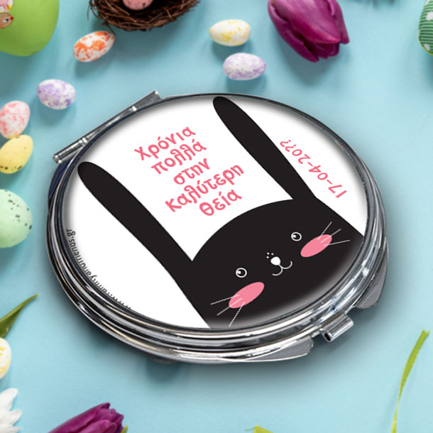 Το μοναδικό Καθρεφτάκι Τσάντας με Λαγουδάκι Ευχή, Δώρο Προσωποποιημένο για Γυναίκα, με Όνομα μπορεί να είναι και το δώρο ονομαστικής γιορτής για την νονα, δώρο γενεθλιων για την θεία, δώρο για την ονομαστική γιορτή της γιαγιας που γιορτάζει.