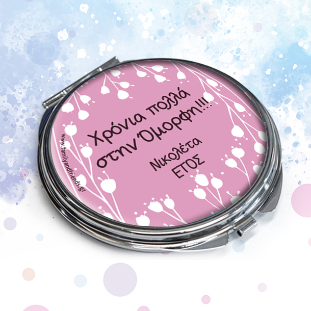 Καθρεφτάκι Τσάντας Προσωποποιημένο με Όνομα, Ευχές, ένα Πρωτότυπο και διαφορετικό δώρο γενεθλίων για γυναίκες, είναι το δώρο που θα εντυπωσιάσει την ώρα που θα το προσφέρετε στην δασκαλα, την μαμα, την θεία ή την νονά.