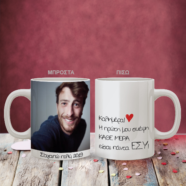 Ένα Μοναδικό Προσωποποιημένο Δώρο Καλημέρα με Δώρο Κούπα με Μήνυμα και Φωτογραφία και ημερομηνία για κάθε αφορμή.