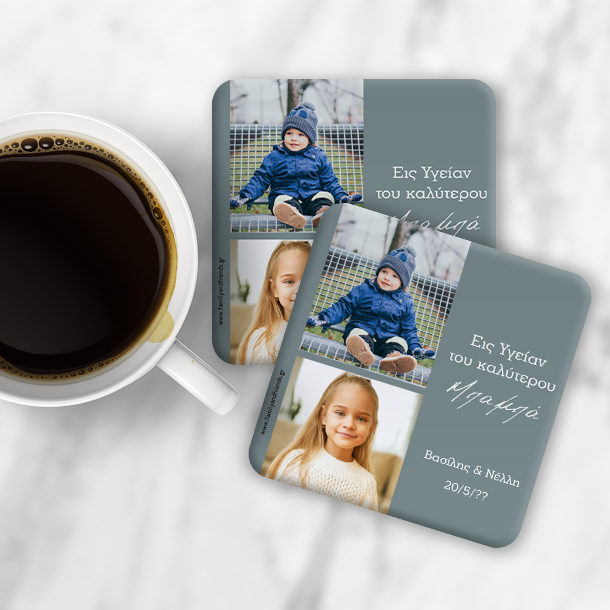 Προσωποποιημένο Σουβέρ με 2 Φωτογραφίες, Ονόματα, σετ 2 τεμάχια, δώρο για τον Μπαμπά, που θα τον εντυπωσιάσει και θα δείξετε ότι τον θυμηθήκατε.