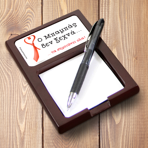 Ο Μπαμπάς και Ο νονός όπως είναι φυσικό δουλεύουν πολλές ώρες στο γραφείο της κάθε μέρα έτσι το Προσωποποιημένο δώρο, Θήκη Ξύλινη για Post it, με γραβάτα, Δώρο για Άνδρες Προσωποποιημένη, για το γραφείο τoυ Μπαμπά ή του νονού με Ονόματα, ημερομηνία, είναι το δώρο που θα την ενθουσιάσει, θα το χρησιμοποιεί κάθε μέρα καθώς θα δουλεύει.
