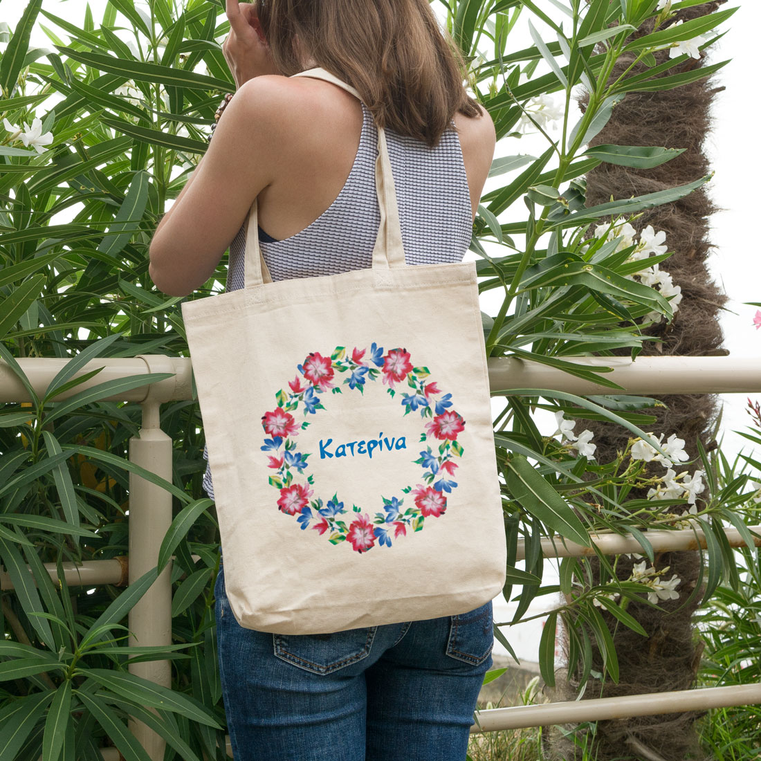 Προσωποποιημένη Τσάντα Αγορών με στεφάνι και Όνομα, Οικολογική με εκτυπωση για τις αγορές σας από το super market το μαναβικο και από κάθε άλλο κατάστημα μιας και οι πλαστικές σακούμες δεν είναι πια για χρήση.