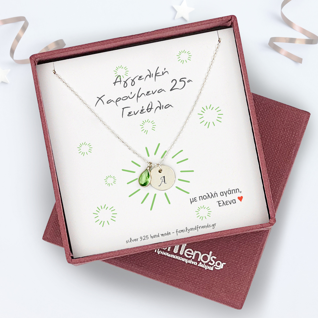 Έχει γενέθλια η αγαπημένη σας εγγονή σε λίγες ημέρες? το Προσωποποιημένο Δώρο Birthstone, με χειροποίητο κολιέ από ασήμι 925, δίσκος με χάραξη αρχικού, με αρχικό, θα είναι το δώρο της γιαγιάς που θα μείνει για πάντα στην κοσμηματοθήκη της εγγονούλα της.