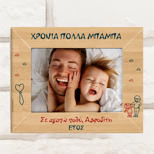 Ένα Μοναδικό Προσωποποιημένο Δώρο για τον Μπαμπά Ξύλινη Κορνίζα με Αφιέρωση, Προσωποποιημένη για Χρόνια Πολλά με Όνομα και ημερομηνία, για να πείτε χρόνια πολλά στον αγαπημένο σας Μπαμπά για δώρο με αφορμή την Γιορτή του Πατέρα, με την αγαπημένη σας φωτογραφία.