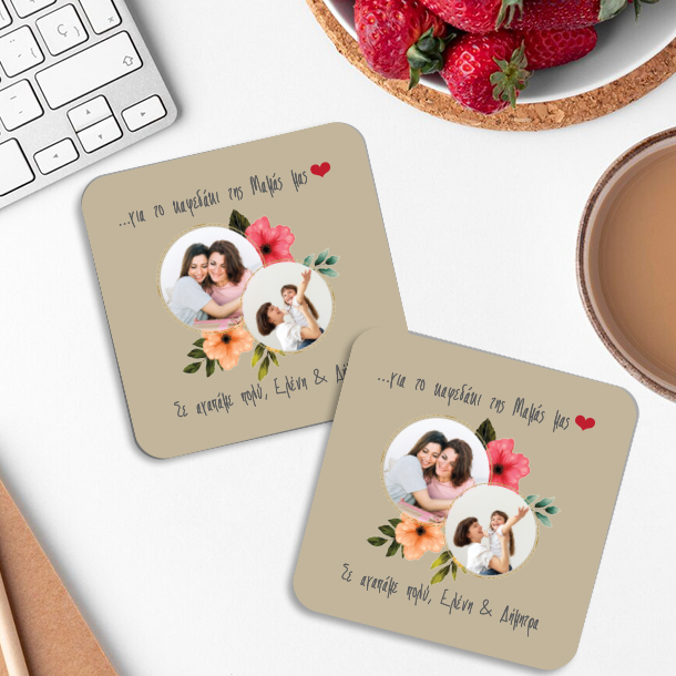 Ανακαλύψτε το ξεχωριστό Προσωποποιημένο Δώρο, Με 2 Φωτογραφίες Σετ Σουβέρ με δικό σας Μήνυμα, Ονόματα στην αγαπημενη σας μαμά με αφορμή την γιορτή της μητέρας που είναι την 2η κυριακή κάθε Μάιο.
