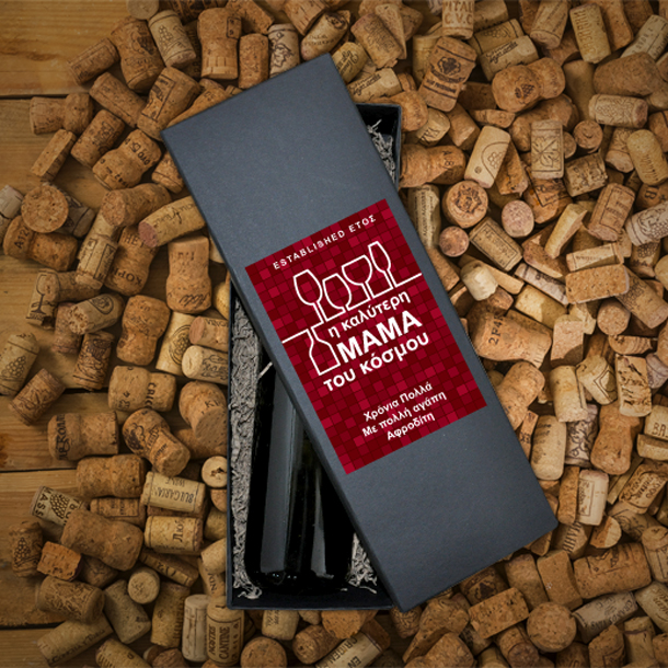 Προσωποποιημένο Δώρο Γιορτή Μητέρας, Σκληρό Κουτί με Κρασί με Ευχές και Χρόνια Πολλά, για ένα μοναδικό δώρο στην Μαμα με αφορμή την γιορτή της μητέρας, και να είστε σίγουροι ότι είναι ένα δώρο που θα ξεχωρίσει από όλα τα άλλα και θα στολίζει το κάθε σπίτι σίγουρα για πολλά χρόνια. Δώρο Γιορτή Μητέρας, Σκληρό Κουτί με Κρασί με Ευχές Προσωποποιημένο με Ετικέτες για μπουκάλι κρασί, γράφετε την αφιέρωση ή ευχή που θέλετε και κάντε το μοναδικό δημιούργώντας πάντα μοναδικές ανμνήσεις σε αυτόν που το προσφέρετε και σε εσάς. Κάντε ένα Προσωποποιημένο Δώρο Γιορτή Μητέρας, Σκληρό Κουτί με Κρασί με Ευχές, Ετικέτες και μπουκάλι κρασί, που φτιάχνεται χειροποίητα αποκλειστικά για το δική σας αγαπημένη μαμα. Δώρο Γιορτή Μητέρας, Σκληρό Κουτί με Κρασί με Ευχές για Χρόνια Πολλά Δώρο για την Μαμά, και είναι το δώρο έξω από τα συνηθισμένα που μπορεί να προσφέρετε με κάθε αφορμή είτε σαν δώρο γενεθλίων ή γιορτής. Δώρο Σκληρό Κουτί με Κρασί με Ευχές, θα στολίζει το κάθε σπίτι για πολύ καιρό και θα κρατηθεί σαν αναμνηστικό για πάντα από κάθε οικογένεια. Δώρο Γιορτή Μητέρας, Σκληρό Κουτί με Κρασί για Χρόνια Πολλά, Προσωποποιημένο Κουτί Κρασί, είναι ένα ξεχωριστό δώρο με αφορμή τα γενέθλια ή τη γιορτή της μαμάς! Μπορείτε επίσης να το συνδυάσετε με ένα κουτί σοκαλατακια για την Γιορτή του κάθε φίλου ή συγγενή! ΠΕΡΙΓΡΑΦΗ Επιλογές Α. Πολυτελές Σκληρό Μαύρο Κουτί Διαστάσεων 35Χ9Χ10 με ετικέτα 3 επιπλέον Ετικέτες Διάστασων 14cm X 9cm Από ειδικό αυτοκόλλητο μη διαφανές, που καλύπτει πλήρως την ετικέτα των κρασιών, αν δεν θέλετε να την αφαιρέσετε πριν προσθέσετε την δική σας Β. Δυνατότητα να προσθέσετε το μπουκάλι κρασί που θέλετε