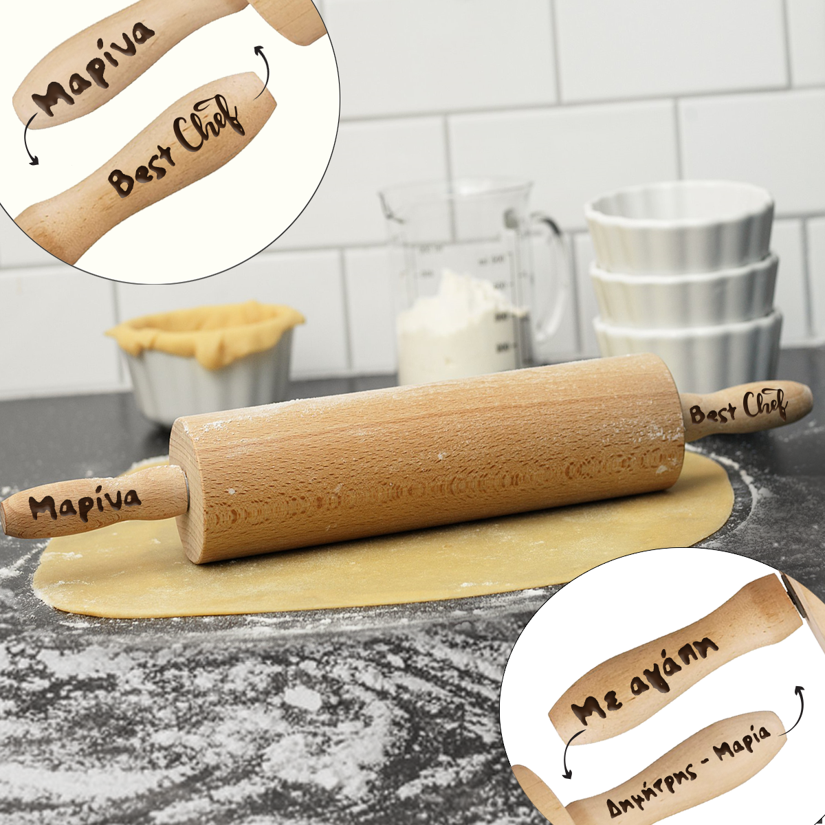 Ξύλινος Πλάστης ζύμης με Ονόματα, Μήνυμα με χάραξη laser, μια μοναδική ιδέα για ένα ξεχωριστό προσωποποιημένο δώρο σε κάθε γυναίκα που τις αρέσει να δημιουργεί στην κουζίνα.