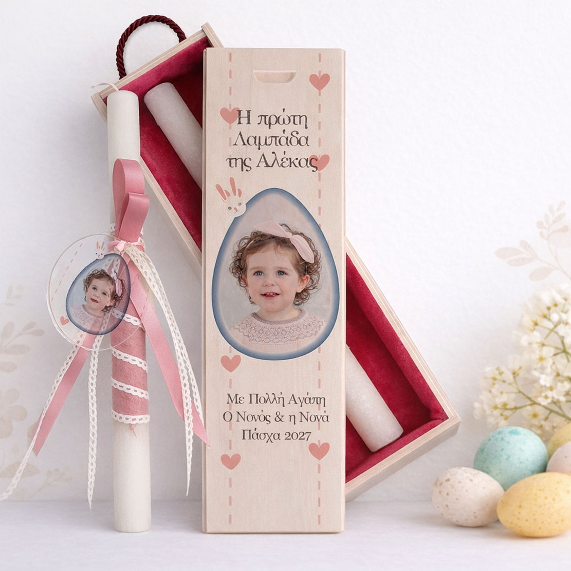 Ξύλινο Κουτί & Λαμπάδα με Plexiglass. Φωτογραφία, Όνομα, Ευχές, aυτό το πάσχα η Λαμπάδα της νονάς μπορεί να είναι ξεχωριστή και προσωποποιημένη. Μοναδικό Προσωποποιημένο Ξύλινο Κουτί & Λαμπάδα με Plexiglass. Φωτογραφία, Όνομα, Ευχές με plexiglass διακοσμητικό με φωτογραφία του παιδιού, για αγόρι και Κορίτσι. Η Λαμπάδα που συνοδεύει ξύλινο κουτί είναι η προσωποποιημένη με ξύλινο διακοσμητικό απο το αρχικό του ονοματος που έχει με ειδική εκτυπωση το ονομα και το ετος. Προσωποποιημένο Ξύλινο Κουτί & Λαμπάδα με Plexiglass. Φωτογραφία, Όνομα, Ευχές, για αγόρι και Κορίτσι είναι το ξεχωριστό πασχαλινό δώρο της Νονάς ή του Νονού, αυτό το Πάσχα 2018. Η χειροποιητη Λαμπάδα σε Πασχαλινό Ξύλινο Κουτί με Φωτογραφία, Όνομα, Ευχές & Πασχαλινή Λαμπάδα με Αρχικό, για αγόρι και Κορίτσι, Κορίτσια, για αγόρια θα εντυπωσιάσει το βαφτιστηρι και θα κρατηθεί από την μαμα και κουμπαρα σας ανανμνηστκό για πάντα. Στο Προσωποποιημένο Ξύλινο Κουτί με Φωτογραφία, Όνομα, Ευχές & Πασχαλινή Λαμπάδα με plexiglass, για αγόρι και Κορίτσι, για αγόρι και Κορίτσι, ηλικιας 1 ετους, 3 ετών, 4 ετων, 5 ετών, 6 ετων, 7 ετών, 8 ετων, η Νονά μπορεί να γράψει τις ευχές της στο βαπτηστήρι της μαζί με το Έτος του πάσχα, κάνοντας την λαμπάδα πραγματικά ξεχωριστή για το βαφτιστήρι της. Πασχαλινες Λαμπάδες με Προσωποποιημένο Κουτί ξύλινο ή πολυτελές χαρτινο με Όνομα ή Φωτογραφία, για αγόρι, είναι ιδανικό δώρο για κάθε κοριτσάκι, είναι μια πρωτότυπη και ξεχωριστή ιδέα για το νονό και τη νονά που θέλει το δώρο του για την πασχαλινή λαμπάδα πραγματικά να ξεχωρίσει αυτό το Πάσχα 2018! Ξύλινο Κουτί & Λαμπάδα με Plexiglass. Φωτογραφία, Όνομα, Ευχές, για αγόρι και Κορίτσι με χειροποίητη Προσωποποιημένη χειροποιητη λαμπάδα και χειροποίητο κουτί για την Λαμπάδα φτιάχνεται από την αρχή αποκλειστικά και μόνο για το αγαπημένο σας βαφτιστήρι ηλικίας 1 ετους έως 12 ετών! Συνδυάστε την Προσωποποιημένη Πασχαλινή Λαμπάδα και Κουτί με Όνομα, Έτος, Ευχές και Χρόνια Πολλά για το Πάσχα με ένα προσωποποιημένο παζλ με όνομα και φωτογραφία ή με ένα πασχαλινό σοκολατένιο αυγό με το όνομα του παιδιού 5 ετών έως 8 ετών.