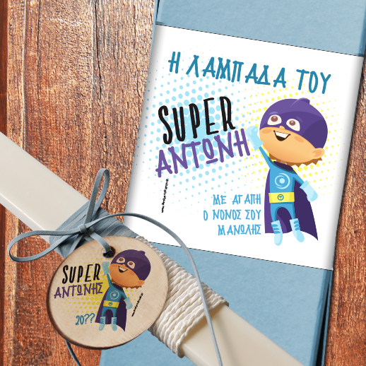 Πασχαλινή Λαμπάδα με Super Ήρωα, Όνομα, Έτος, μια πρωτότυπη και ξεχωριστή ιδέα κάθε νονό και νονά που θέλει η λαμπάδα που θα κρατάει το βαφτιστήρι του να ξεχωρίσει αυτό το Πάσχα!