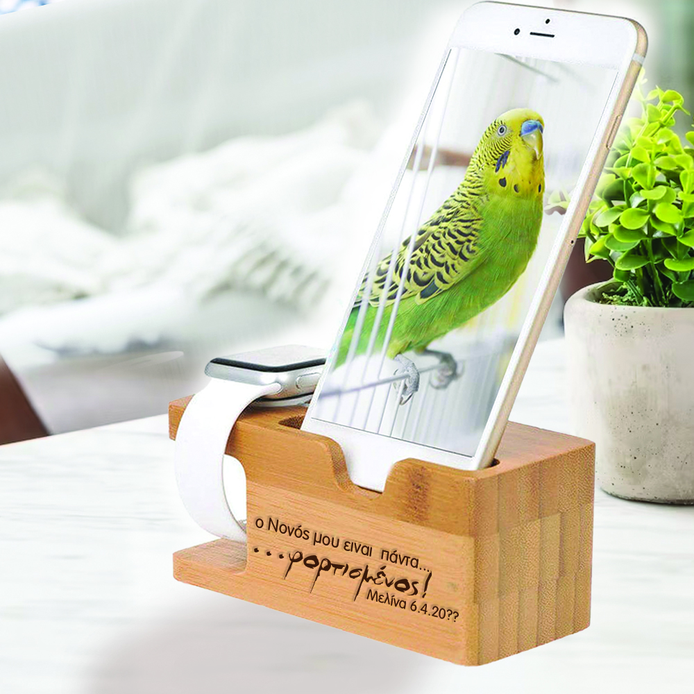 Ξύλινη θήκη φορτιστής για κινητό, i phone, i watch
