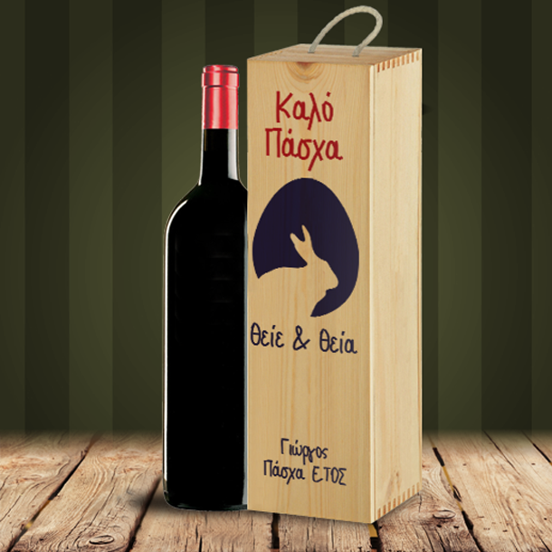 Δώρο Πάσχα Ξύλινο Κουτί με Κρασί, για τον Θείο, την Θεία