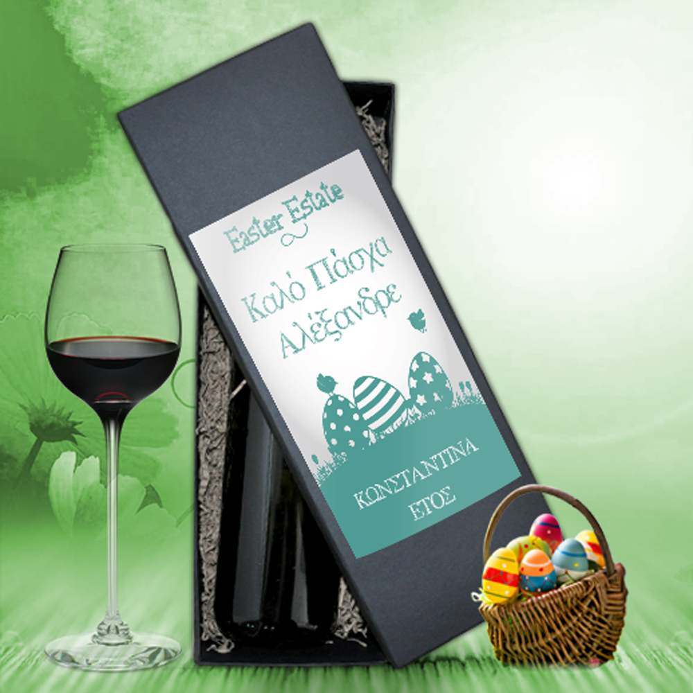 Για Μπουκάλι Κρασί και Κουτί με ετικέτες με Ονόματα και απολαύστε όποιο κρασί και αν επιλέξετε να κάνετε δώρο για το Πάσχα. Κρατήστε ενθύμιο το μπουκάλι με την προσωποποιημένη ετικέτα για να θυμάστε για πάντα την μοναδική στιγμή. Για Μπουκάλι Κρασί και Κουτί ετικέτες με Όνομα Easter Estate ένα πασχαλινό δώρο σε κάθε συνεργάτη ή φίλο για να πειτε τις πασχαλινές ευχές σας.