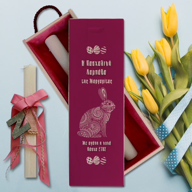 Λαμπάδα Χειροποίητη σε Κουτί Ξύλινο, με Αρχικό Ξύλινο
