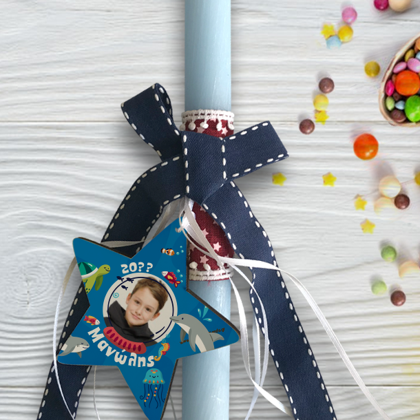 Χειροποίητη Λαμπάδα με Αστέρι Ξύλινο Διακοσμητικό με Φωτογραφία, Όνομα, θα εντυπωσιάσει και θα κρατηθεί ανανμνηστκό για πάντα.