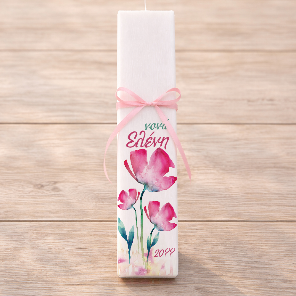 Λαμπάδα για Νονά, με Λουλούδια και Όνομα, Ένα δώρο που θα μείνει για πάντα γιατί εχει στιγμες και αναμνήσεις από παιδικά χρόνια. Χειροποίητη Λαμπάδα με όνομα μαζί με ένα πασχαλινό δώρο με όνομα. Στο familyandfriends.gr θα βρείτε μοναδικά προσωποποιημένα Πασχαλινά δώρα για αγόρια και κορίτσια, άνδρες και γυναίκες. ΠΕΡΙΓΡΑΦΗ ΠΡΟΙΟΝΤΟΣ Πασχαλινή Λαμπάδα με Όνομα & διακόσμηση κορδέλα Λαμπάδες από αρωματικό κερί Πλακέ 30cm X 4 cm Χ 1.3 cm