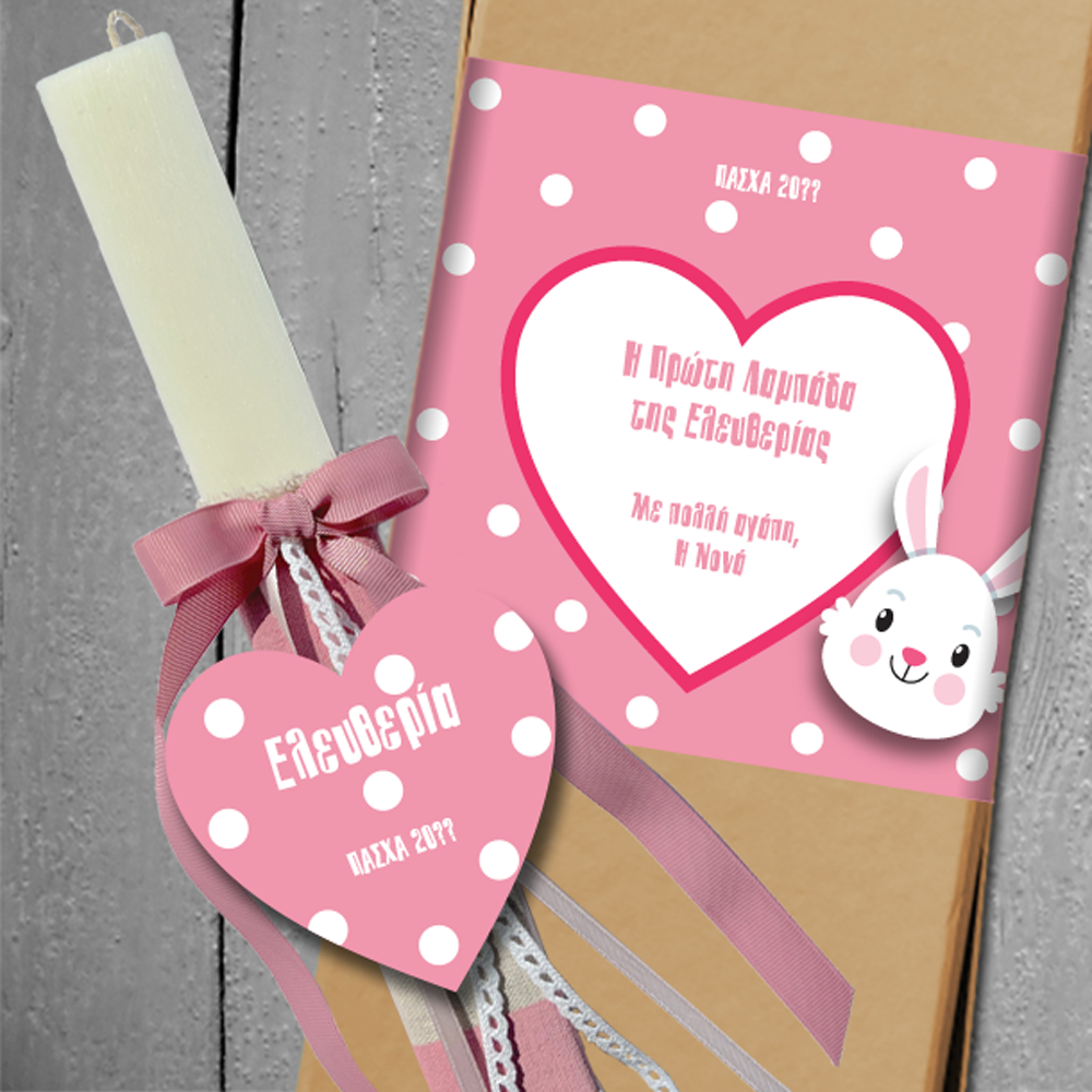 Χειροποίητη Λαμπάδα με Καρδιά σε Κουτί, με Όνομα, Ευχές