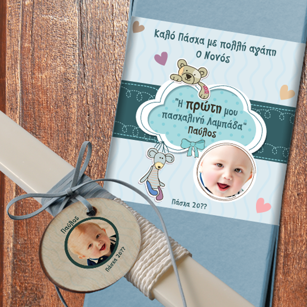 Συνδυάστε την Προσωποποιημένη Πρώτη μου Πασχαλινή Λαμπάδα με Φωτογραφία σε Κουτί, Χρόνια Πολλά για αγόρι, με ένα