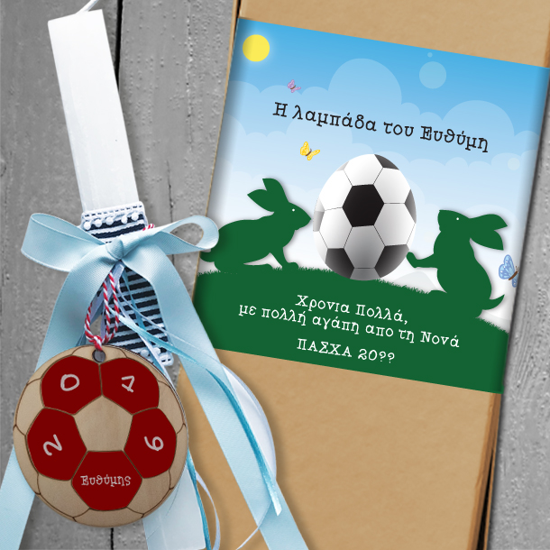 Μοναδική Χειροποίητη Πασχαλινή Λαμπάδα με Μπάλα Ξύλινο Διακοσμητικό και Κουτί με Όνομακαι Ευχές, με Προσωποποιημένο Κουτί, για αγόρι και Κορίτσι Προσωποποιημένα με Ευχές είναι το ξεχωριστό πασχαλινό δώρο της Νονάς ή του Νονού, αυτό το Πάσχα 2018, 2019, 2020, 20??. Η Πασχαλινή Προσωποποιημένη χειροποιητη Λαμπάδα με Μπάλα Ξύλινο Διακοσμητικό και Κουτί με Όνομα και Ευχές, για αγόρια και κορίτσια, θα εντυπωσιάσει και θα κρατηθεί αναμνηστικό για πάντα. Στην Προσωποποιημένη Πασχαλινή Λαμπάδα με Μπάλα Ξύλινο Διακοσμητικό και Κουτί με Όνομα και Ευχές, για αγόρι, ηλικιας 1 ετους, 3 ετών, 4 ετων, 5 ετών, 6 ετων, 7 ετών, 8 ετων, η Νονά μπορεί να γράψει τις ευχές της στο βαφτιστήρι της μαζί με το Έτος του Πάσχα, κάνοντας την λαμπάδα πραγματικά ξεχωριστή για το βαφτιστήρι της 4 ετών έως 6 ετών, 3 ετών, 5 ετών και για τους γονείς του και κουμπάρους της.
