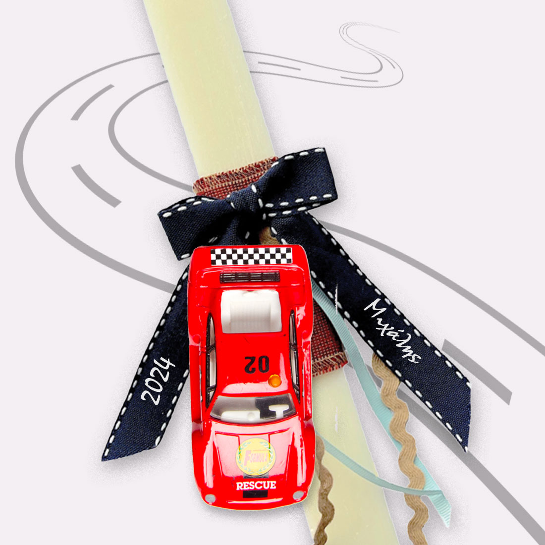 Χειροποίητη Λαμπάδα με δώρο αυτοκινητάκι, Όνομα, για αγόρια αν Θέλετε η λαμπάδα που θα κρατά το Βαφτιστήρι σας στην ανάσταση αυτό το Πάσχα να ξεχωρίζει;