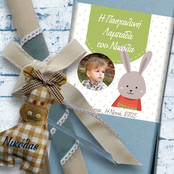 Μοναδική Πασχαλινή Λαμπάδα με Προσωποποιημένο Κουτί με Λαμπάδα, Όνομα, Φωτογραφία και Καμηλοπάρδαλη, για αγόρι Προσωποποιημένα και τα δύο, Έτος, Ευχές είναι το ξεχωριστό πασχαλινό δώρο της Νονάς ή του Νονού, αυτό το Πάσχα 2020.