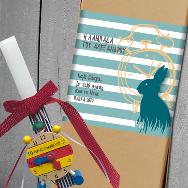 Αυτό το πάσχα η Λαμπάδα της νονάς μπορεί να είναι ξεχωριστή και προσωποποιημένη. Μοναδική Πασχαλινή Λαμπάδα με Παιχνίδι Ρολόι Ξύλινο, για να μάθει την ώρα, σε κουτί με Όνομα και Ευχές, με Προσωποποιημένο Κουτί, για αγόρι και Κορίτσι Προσωποποιημένα με Ευχές είναι το ξεχωριστό πασχαλινό δώρο της Νονάς ή του Νονού, αυτό το Πάσχα 2018, 2019, 2020, 20??. Η Πασχαλινή Προσωποποιημένη χειροποιητη Λαμπάδα με Παιχνίδι Ρολόι Ξύλινο σε κουτί με Όνομα και Ευχές, για αγόρια και κορίτσια, θα εντυπωσιάσει και θα κρατηθεί αναμνηστικό για πάντα.