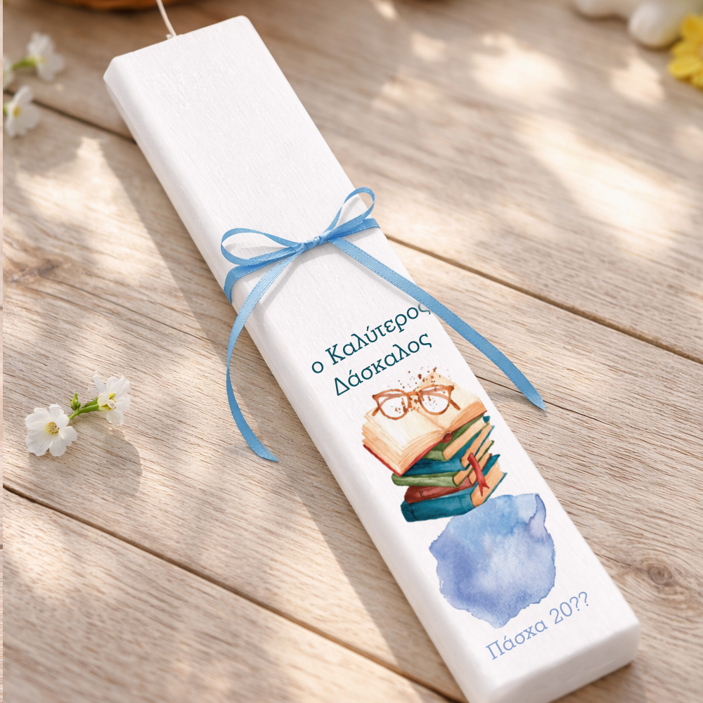 Η προσωποποιημένη πασχαλινή λαμπάδα για δάσκαλο με όνομα αποτελεί ένα ξεχωριστό και συμβολικό δώρο που θα κάνει τον αγαπημένο δάσκαλο να χαμογελάσει. Με το όνομα του δασκάλου, η λαμπάδα γίνεται ένα μοναδικό πασχαλινό ενθύμιο. Ένα δώρο που συνδυάζει παράδοση και το ενδιαφέρον σας, ιδανικό για μαθητές που θέλουν να δείξουν την εκτίμησή τους στον δάσκαλό τους.
