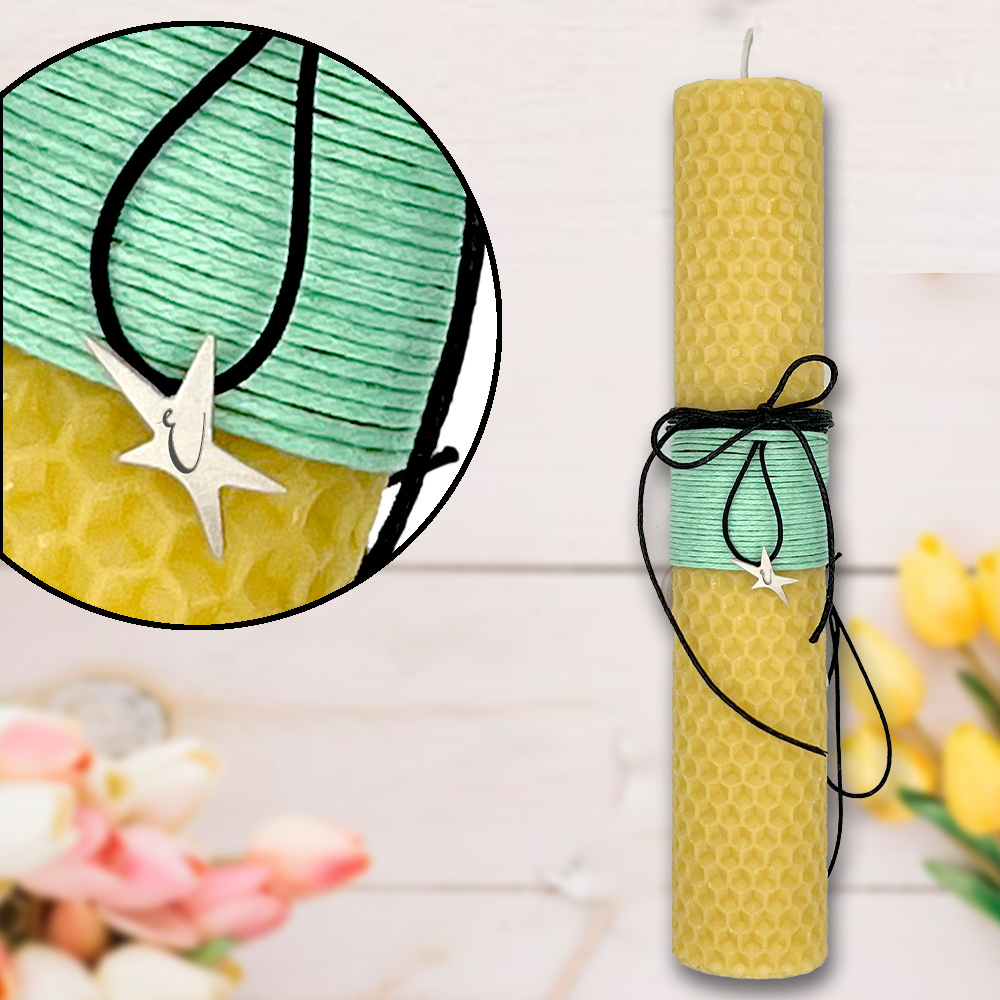 Χειροποίητη Λαμπάδα μελισσοκέρι με ασημένιο κολιέ αστέρι για Κορίτσια