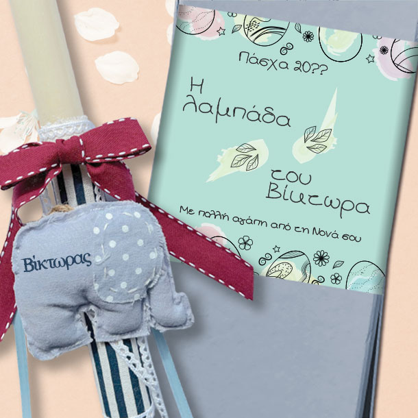 Χειροποίητη Πασχαλινή Λαμπάδα με διακόσμηση από κορδέλες και ύφασμα και Προσωποποιημένο υφασμάτινο ελεφαντάκι με ειδική εκτύπωση με όνομα. Στο familyandfriends.gr θα βρείτε μοναδικά προσωποποιημένα Πασχαλινά δώρα, γενεθλίων και δώρα γιορτών προσωποποιημένα για αγόρια και κορίτσια, άνδρες και γυναίκες. Στα Προσωποποιημένα δώρα με ή χωρίς Φωτογραφία, για το φίλο ή τη φίλη, τον άνδρα ή τη γυναίκα μπορείτε να αλλάξετε τα κείμενα όπως εσείς θέλετε ανεξάρτητα από την δική μας πρόταση.