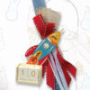 Χειροποίητη Πασχαλινή Λαμπάδα με διακόσμηση από ύφασμα και δαντέλα με σατέν κορδέλες με Προσωποποιημένο διακοσμητικό Ξύλινος Πύραυλος ημερολόγιο, με ειδική εκτύπωση ονόματος.