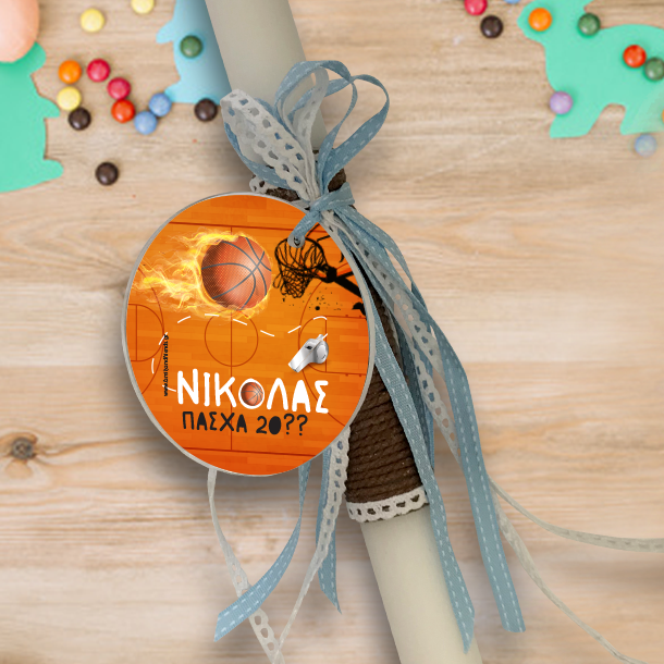Plexiglass Διακοσμητικό με Όνομα σε Πασχαλινή Λαμπάδα, Με θέμα Μπάσκετ, θα εντυπωσιάσει και θα κρατηθεί ανανμνηστκό για πάντα.