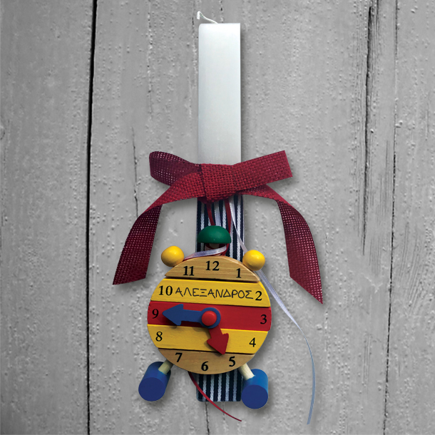 Προσωποποιημένη χειροποιητη Πασχαλινή Λαμπάδα, Παιχνίδι με Λαμπάδα, συναρμολογούμενο διακοσμητικό ξύλινο ρολόι με Όνομα, για Κορίτσια και αγόρια, η διαφορετική λαμπάδα που η Νονά μπορεί να προσφέρει τις ευχές της στο βαφτιστήρι της αυτό το πάσχα, κάνοντας την λαμπάδα πραγματικά ξεχωριστή για βαφτιστήρι της 4 ετών έως 6 ετών, 3 ετών, 5 α το βαφτιστήρι της 4 ετών έως 6 ετών, 3 ετών, 5 ετών και για τους γονείς του και κουμπάρους της.