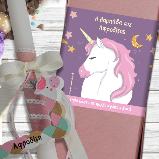 Αυτό το πάσχα η Λαμπάδα της νονάς μένει αναμνηστικό για πάντα, γιατί είναι ξεχωριστή και προσωποποιημένη με Παιχνίδι Μονόκερο σε Κουτί με Όνομα, Ευχές, Χειροποίητη.