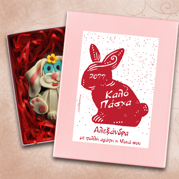 Πασχαλινό Αβγό σε Κουτί με Λαγουδάκι, Όνομα, Ευχές, Έτος