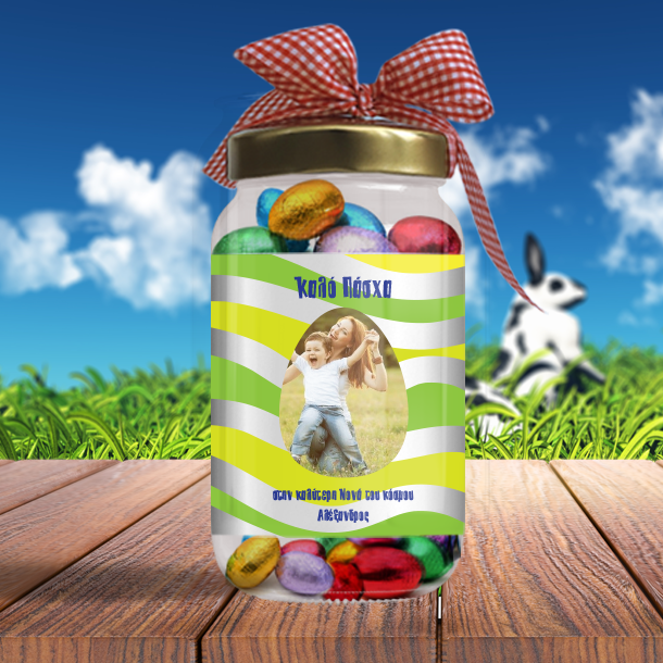 Πρωτότυπο αναμνηστικό Δώρο για Πάσχα, Πασχαλινό Βαζάκι με Φωτογραφία και Σοκολατένια Αυγουλάκια, Πασχαλινό Δώρο με φωτογραφία, Ονόματα, για Νονά, Νονό, για τη Γιαγιά και το Παππού, με όνομα και ημερομηνία για τις ημέρες του Πάσχα, για να τους πείτε τα Χρόνια Πολλλά.